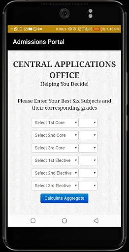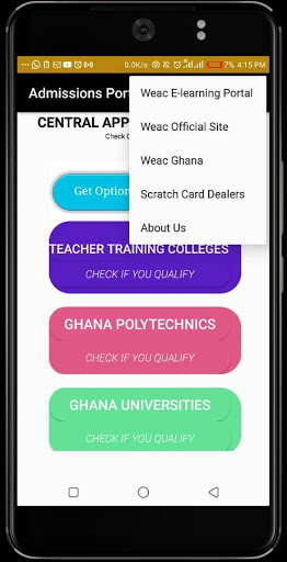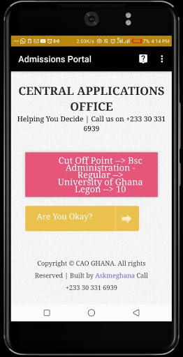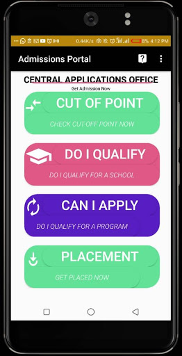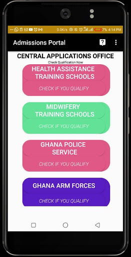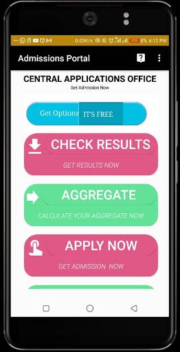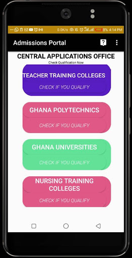 This app is there to help student and pupils to get easy admissions into the various secondary schools and universities of their choice. This app help the user to get Admission letter without stress form his /her prefer school, Check results(Both BECE, WASCCE and SSCE), Calculate Aggregate, Check if he/she qualifies for an Institution, Apply direct to the school of his /her Choice,etc. One can check if he/she qualifies for Nursing,Police,Prisons,Immigration, Armed forces,etc directly through this app.