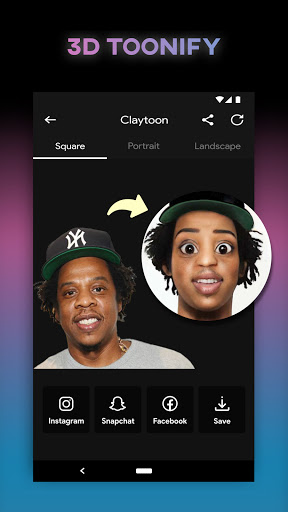 Turn yourself to 3D Toon! 3D Toon is a toonified miniature version of you, that looks like a 3D cartoon animation character. Share your #3dtoon on social media and show your tiny cartoon twin to your friends. Our 3D Toon feature uses cutting edge AI technology behind the scenes to let you discover your Disney look alike.