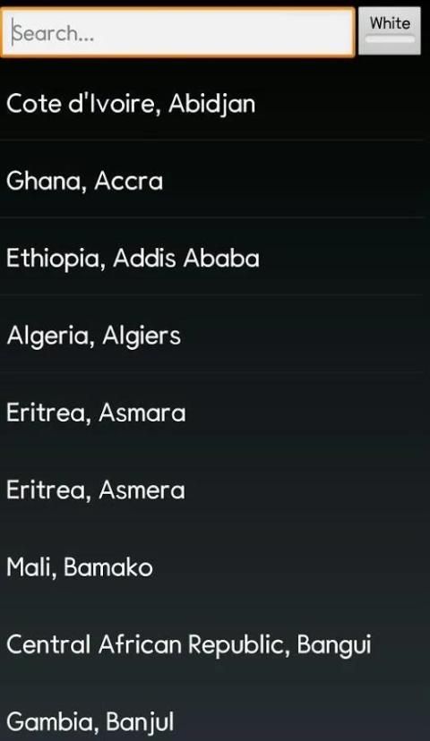 당신은 리스트에서 국가를 고르거나,국가명, 도시명을 검색하여 시간을 설정할 수 있습니다.