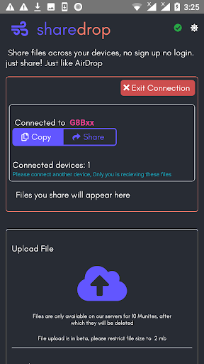 Share files across your devices, no sign up no login. just share! Just like AirDrop