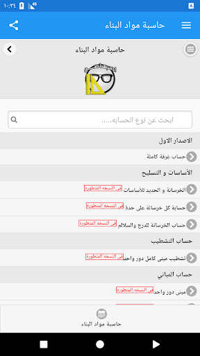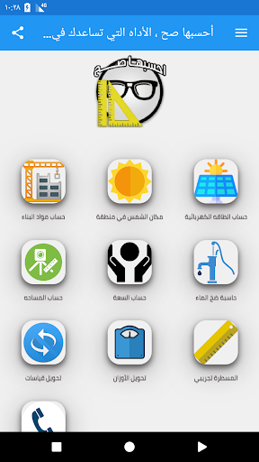 الأصدار التاسع - اصلاح بعض الأخطاء - تم اضافة مميزات جديده كالحاسبة بالنسبة المؤية و حاسبة ضخ الماء وحاسبة الكومه الكميات