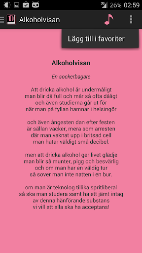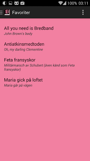 I appen kan du hitta de sånger du vill genom att sortera på titel/melodi, välja kategori och sen gå in på sången eller kanske enklast bara söka efter den.