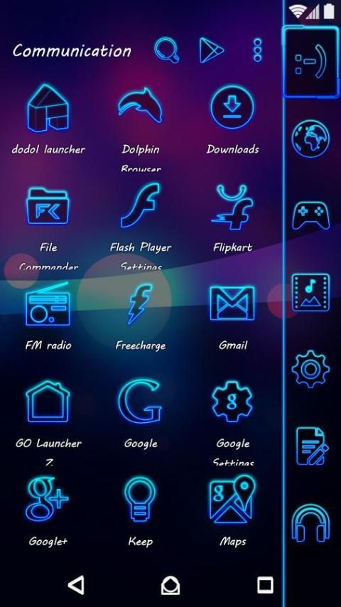 Menu → Preferences → App Grid → Icon Pack → Neon Theme