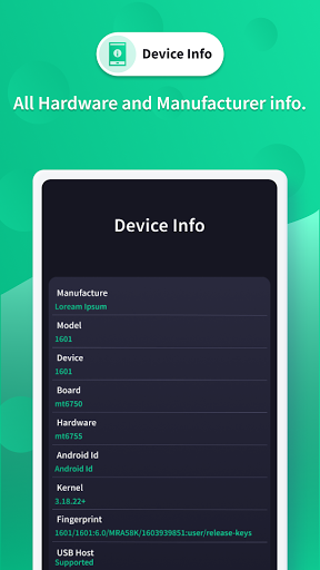 مع تطبيق مدقق توافق الهاتف، يمكنك التحقق من المعلومات المتعلقة بالجهاز الخاص بك والتي توفر معلومات حول معلومات الجهاز ومعلومات البطارية وتنبيهات البطارية ومواد الذاكرة ومعلومات العرض وفعالات الإعلام، معلومات وحدة المعالجة المركزية، تطبيقات CPU، تطبيقات النظام، معلومات WIFI والعديد من أنواعها اختبار الجهاز متاح.