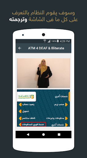 التطبيق على الهاتف ، ثم يقوم بتوجيه كاميرا الهاتف إلى شاشة ماكينة الصرف الآلى فيقوم البرنامح بالتقاط صورة حية