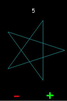 A sandbox for Android where the player can see a blue star and "play" with the ability to choose how many points will this star have. When the application starts you can see a star in the center of the screen. To interact simply tap the symbols " " and "-" at the bottom of the screen. Every touch on the symbols the number of tips of the star decreases or increases by one, and the display on the top shows the amount of tips that the star has right now. If any one of the buttons is constantly pressed the amount of tips changes "nonstop."