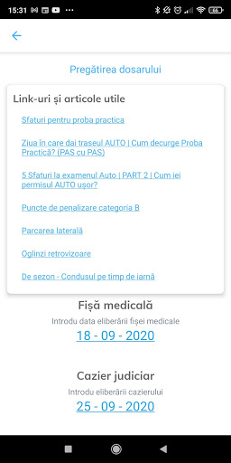 • خطة الإذن، والتي تحتوي على المعلومات اللازمة، من تسجيل مدرسة السائقين، المستندات اللازمة، للحصول على نصائح لامتحانات السيارات.