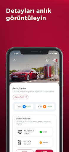 نحن نهدف إلى التأكد من استلامهم خدمة عالية الجودة من خلال إجراء استثمارات في البنية التحتية اللازمة من أجل زيادة مستخدمي السيارات الكهربائية في تركيا.يمكنك استخدام سياراتك الكهربائية مع راحة البال مع محطات شحن ZES التي توجد الآن في تركيا. Tesla Model 3 ، BMW I3 ، Renault Zoe ، Jaguar I-Pace ، Tesla Model X ، Chevrolet Bolt EV ، Fiat 500e ، Ford Fusion Energi ، Volkswagen E-Golf ، Prius Plug-In ، Kia Soul EV وجميع المركبات الكهربائية الأخرى zes التي يمكنك شحنها في المحطات. ZES للمحطة التي ستقوم بشحنها. يمكنك بسهولة قراءة رمز الاستجابة السريعة بهاتفك والبدء في شحن سيارتك بسهولة.
