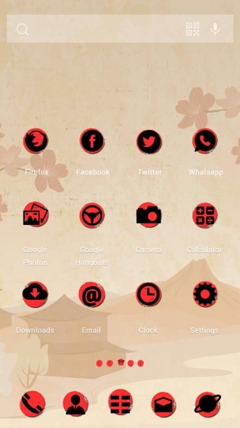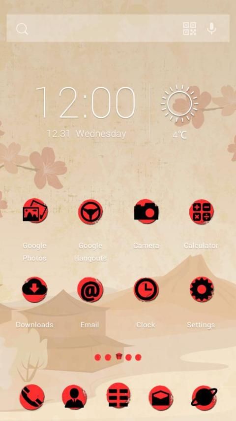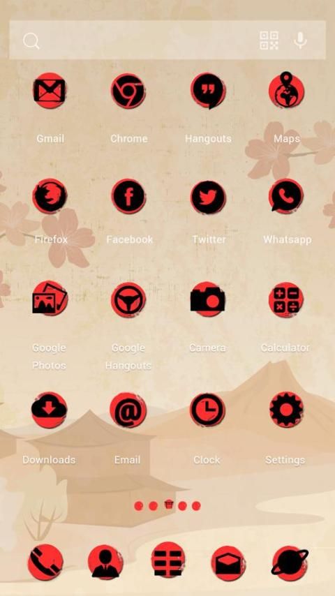 Asian culture is fascinating and you can see a part of that in this predominantly red Launcher. All of the buttons resemble Asian culture and motifs. Japan is a simple yet very interesting launcher with simple buttons that have predominantly red theme.