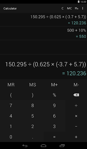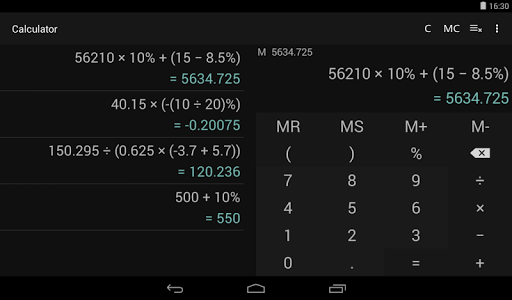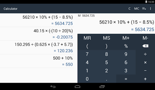 - On tablets you can view the calculator as well as your recent operations at the same time.