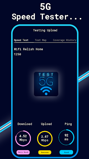 5️⃣g اختبار السرعة سهل الاستخدام تطبيق Necher Sped Tester: