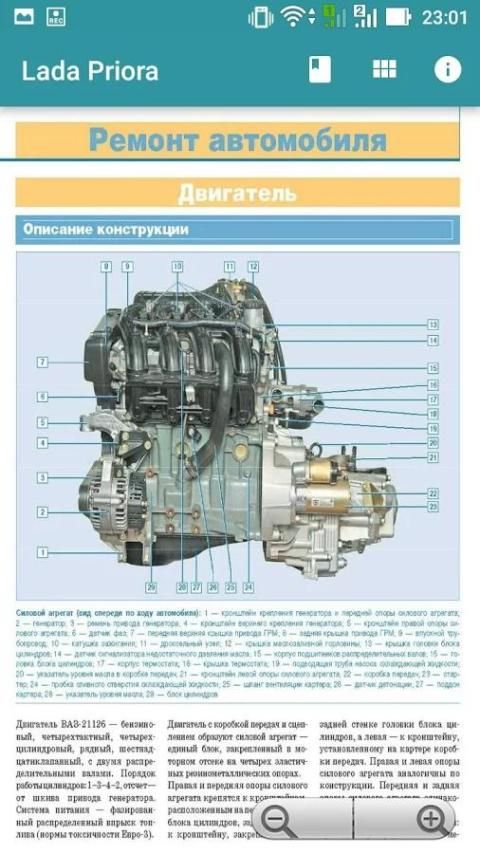 تطبيق سلسلة من الألوان المتعددة يتضح دليل لصيانة وإصلاح المركبات من تلقاء نفسها. في ملحق للتصميم مكونات وأنظمة LADA بريورا سيارة مع محرك VAZ-21126. وصف تفصيلي للأخطاء الرئيسية وأسبابها وسبل الانتصاف. ويوضح عمليات التفكيك وإصلاح وتوفير التعليقات. يتم عرض أدوات العرض الطلب، ومصابيح والدوائر الكهربائية ومواد التشحيم وسوائل التشغيل، وتشديد عزم الدوران من الاتصالات مترابطة. ويهدف دليل للسائقين الذين يريدون لصيانة وإصلاح السيارة نفسك، ولكن أيضا للعاملين في الخدمة.