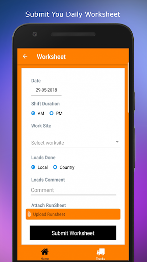 يمكنك بسهولة ملء تفاصيل ورقة العمل مع التطبيق بعد نهاية تحولك وإرفاق ورقة التشغيل اليومية.