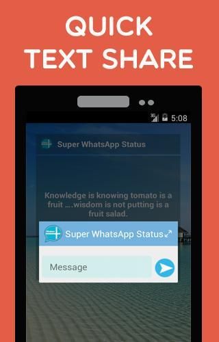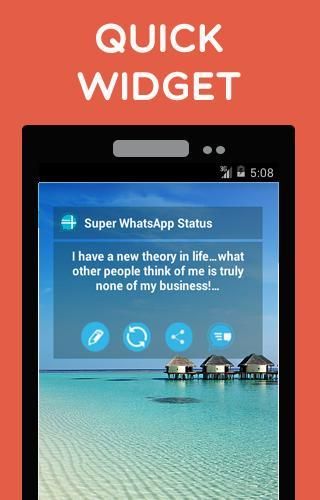 "Super WhatsApp Status" is the best status/SMS collection App with status widget. English Status & Hindi Status are Included.