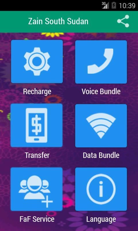 Zain South Sudan is the leading operator in South Sudan. Zain SS is committed to provide the best solution to its subscribers. the Zain all in one app will help our subscribers use our services easily and without any hassle. using the Zain app will help you to perform the following operations with out the need to remember any USSD short code.
