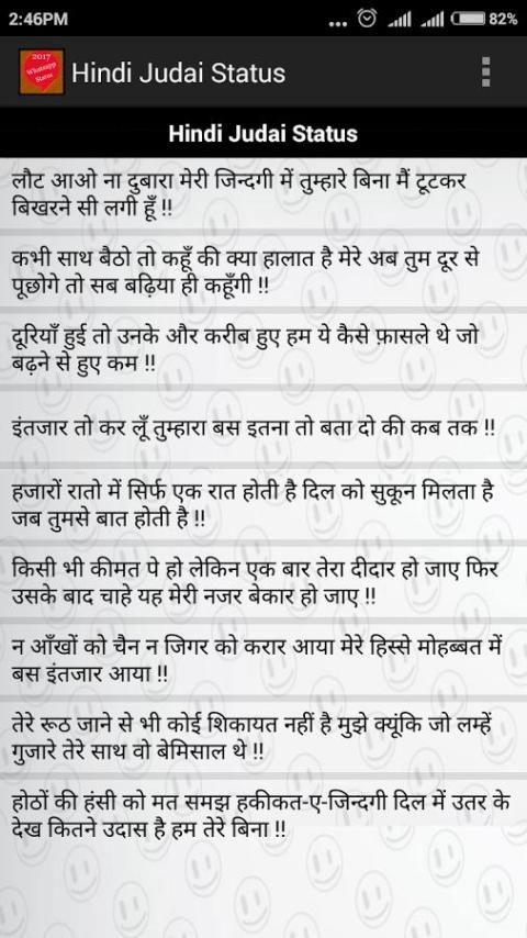 يومية جديدة واتس اب الحالة هو التطبيق لأفضل مجموعة من واتس اب الحالة في اللغة الإنجليزية، الهندية، المهاراتية، الغوجاراتية، البنجابية، والتاميلية، والرسائل القصيرة، Shayari الوضع متاح ..