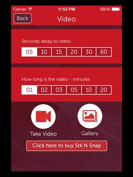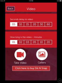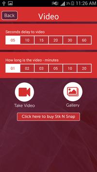 Stk N Snap App controls taking video by setting 1. a timed delay until the video starts and 2. the length of the video.