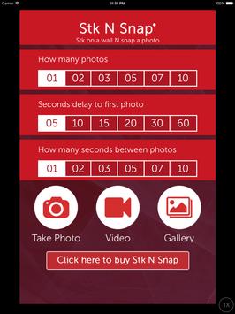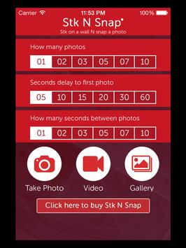 Stk N Snap App controls taking photographs by setting 1. a timed delay to the first photo, 2. the number of photos and 3. the time delay between photos.
