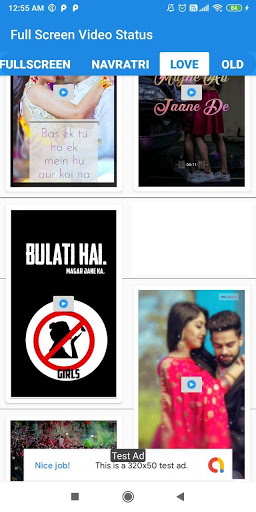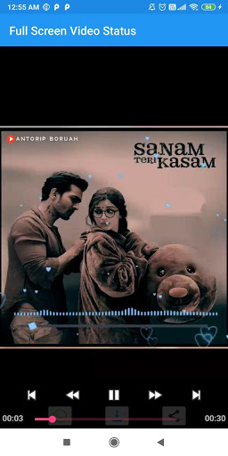 Full Screen Video Status App using video view ,share & download on social media.