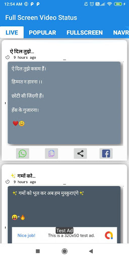In This Full Screen Hd Video Status App Are Available daily update status collection so you never out of latest status or story videos status to upload on WhatsApp ,Facebook and Instagram.