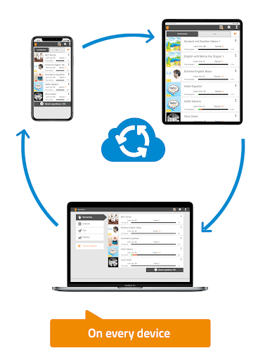 - يتم مزامنة تقدم التعلم الخاص بك تلقائيا بين جميع المنصات الخاصة بك عند الوصول إلى الإنترنت