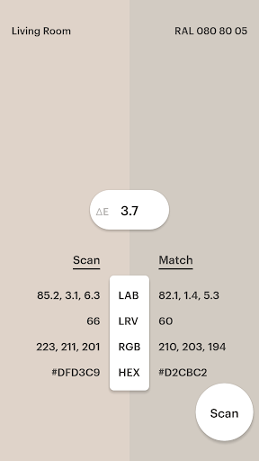 كشف RGB و Hex و CMYK والقيم المختبرية للألوان الممسوحة ضوئيا.
