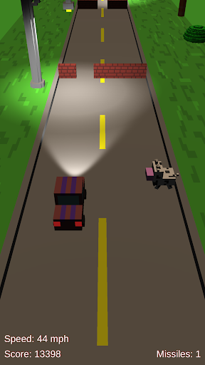 Night time is coming and it can be hard to find your way down the road. Drive as long as possible before crashing. Power-up your car to get even further. How far will you get?