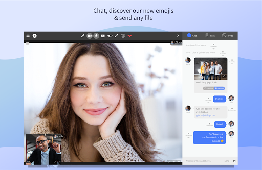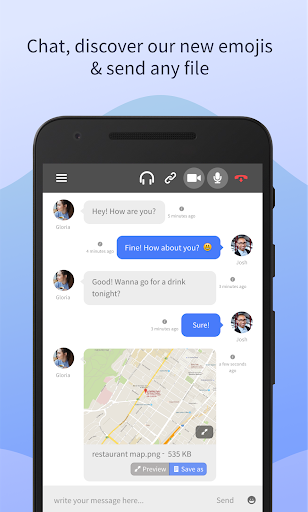 * مكالمة فيديو أو مكالمة صوتية ومحادثة ومشاركة الملفات. كل ذلك في خدمة آمنة واحدة.