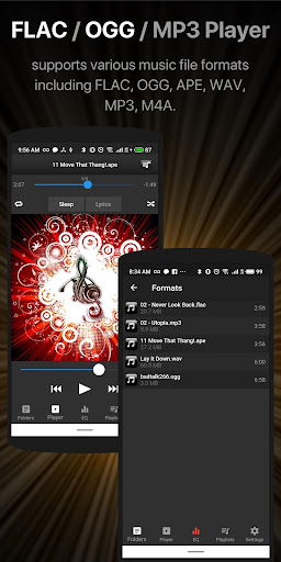 - MP3 / FLAC / OGG / WAV / WAV / APE دعم الملفات