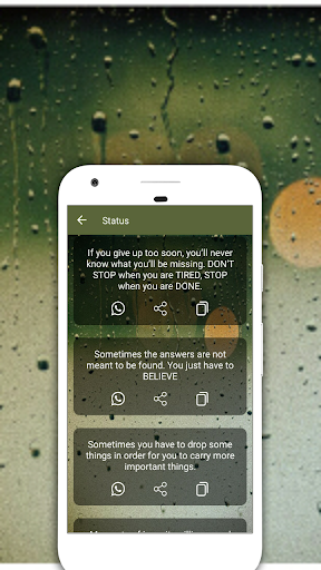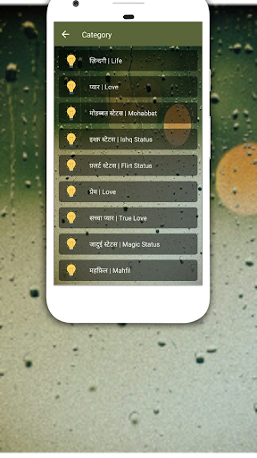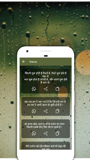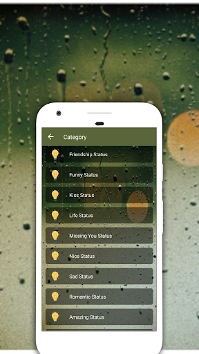 This app contains following category like Life Status, Attitude Status, Sad Status, Bewafa Status, Break-up Status, Dekh Pagli Status, Diwali Status, Love Status, Family Status, Father Status, Festivals Status, Friendship Status, Dhokha Status, Mohabbat Status, ishq Status,True Love Status, Missing You Status, Mother Status, Kiss Status.