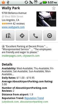 With only two screen touches real time departure or Arrival Status is displayed and updated every two minutes automatically for the airline selected. Optional audio sound alerts user status update has occured. An interactive airport map pinpoints any gate location. Information on all major LAX parking lots is provided, included street views of the lot, automatic address insertion into google maps to make reading lot reviews easy and enabling google navigation. Easy links to all major garage websites are provided to make it a snap to check deals being offered by the various parking garages.