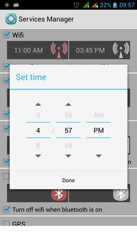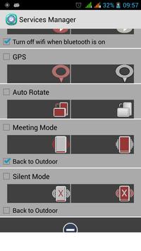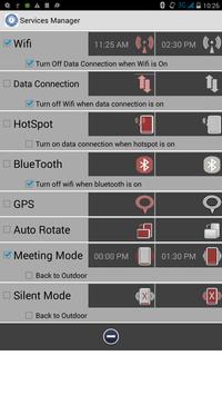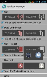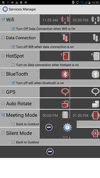 user can set to perform some necessary action regarding a service. for example he/she can set turn of wifi connection while turning on data connection automatically.