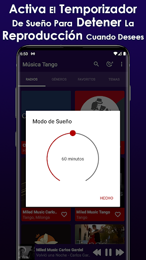 استمتع بالاستماع إلى هذا التطبيق أفضل محطات التانغو، يمكنك العثور على النجاحات العظيمة لهذا النوع الموسيقي الجذاب للاستماع إلى أي نوع من اللقاء، وكذلك مجموعة واسعة من محطات الراديو. لا يعمل هذا التطبيق دون اتصال بالإنترنت أو بدون الإنترنت لأنه من الضروري لجميع محطات الراديو بشكل صحيح.