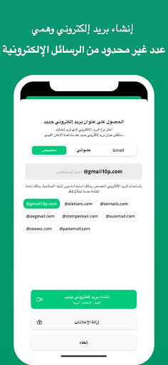 ● إنشاء عنوان بريد إلكتروني جديد على الفور
