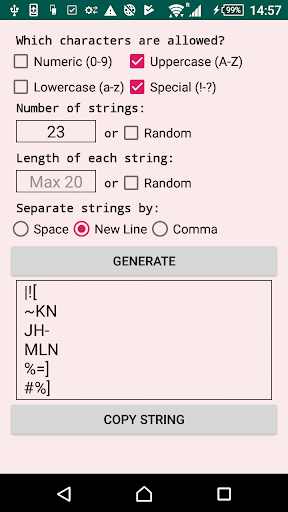 يساعد تطبيق Ground Generator Randoor على توليد سلاسل عشوائية على جهاز Android.