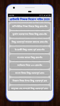 সালের প্রাইমারি শিক্ষক নিয়োগ পরীক্ষায় অংশগ্রহণ করবেন তাদের জন্য এই অ্যাপটি অনেক কাজে দিবে । অ্যাপটিতে রয়েছে বিষয়ভিত্তিক প্রশ্ন ও উত্তর । রয়েছে বিগত সালের প্রশ্ন ও তার সামধান ।
