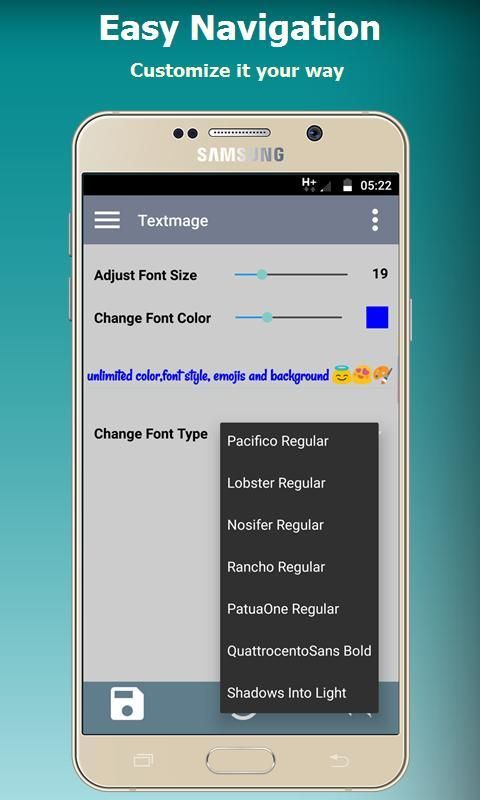 بسهولة وضع نص على صور، صور أو صور ونمط هذا الامر مع لدينا خطوط أنيقة عديدة.