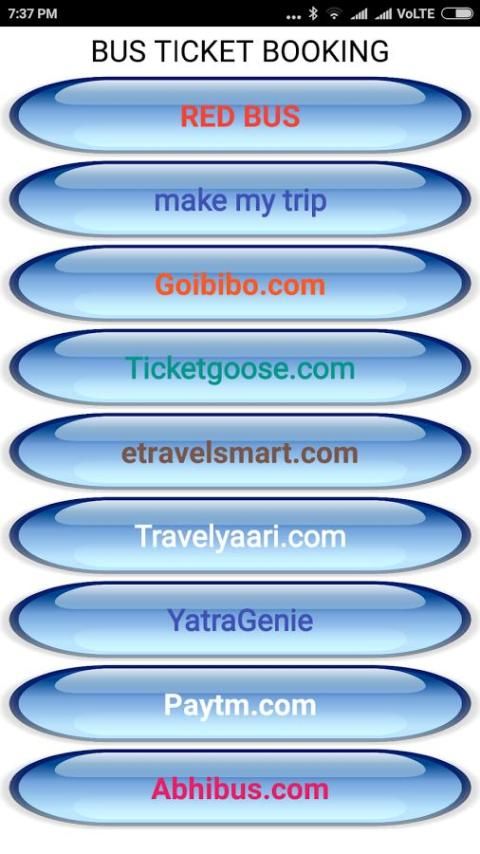 هذا التطبيق هو وجود تسعة في مجموعة واحدة من وصلات الموقع إلى صفحات وطنهم لحجز تذكرة حافلة. كثير من الوقت على الموقع هو أسفل بحيث لم يتمكن من حجز التذاكر. هنا كنت قد عرضت موقع بديل لحجز التذاكر. رابط تقدم لك إلى الصفحات الرئيسية على شبكة الإنترنت بحيث يتم عرض العروض التي قدمها لهم، ويمكن استخدامها من قبل لك.