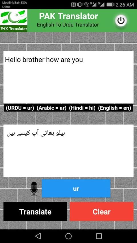 ترجمة اللغة الإنجليزية في الأردية والهندية واللغة العربية. كتابة أو لصق النص الخاص بك على الكتابة مربع أو انقر على زر هيئة التصنيع العسكري وسجل مع صوتك ونرى يحدث إذا كنت ترغب التطبيق لدينا ثم لا ننسى ان تعطينا رأيك مع 5 نجوم.