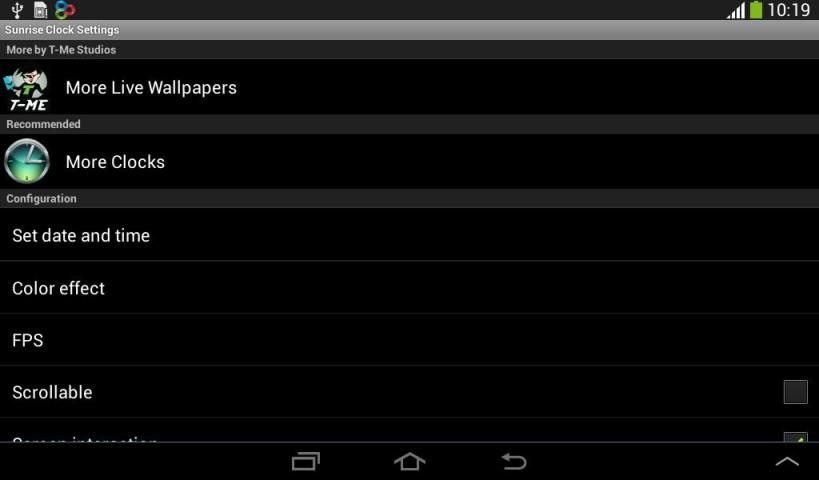 يمكنك زيادة حجم وسرعة وكثافة العناصر، كما يمكن أيضاً ابتكار ثلاث مؤثرات لونية مختلفة وثلاث درجات مختلفة من كثافة الألوان. لتخصيص التطبيق، افتحه، واضغط على "تهيئة خلفية حية" ثم اضغط على "الإعدادات"
