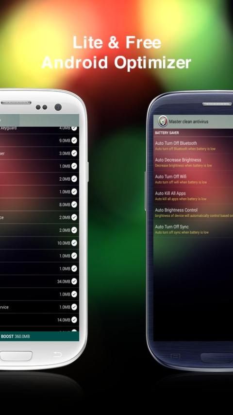 ماستر مكافحة الفيروسات نظيفة يمكن أن تعزز من ذاكرة الوصول العشوائي الخاصة بك. في التبويب المهام يمكنك انتقاد لتنظيف عملية فردية من ذاكرة الوصول العشوائي. مساعدة استخدام الذاكرة لزوم لها وتسريع جهازك. هذا التطبيق يمكن أن تساعدك على تعزيز الأداء الخاص بك جهاز الروبوت. فمن السهل أن الافراج عن مزيد من التخزين على الهاتف وSD بطاقة، دعم الألعاب وذاكرة الجهاز، تسريع التعيينات الهاتف إزالة التنفيذ السريع غير المرغوب فيه