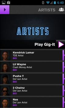 Plus, the App provides fans with the ability to compete in interactive fan challenges to earn GIG cash from PLAY GIG-IT to advance in the game and top the Leaderboard!