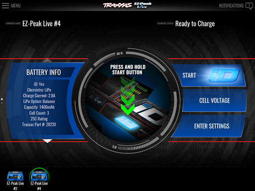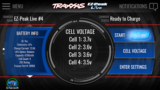The Traxxas iD system is the easiest and most efficient way to charge your iD-equipped batteries. When you connect an iD-equipped battery to your EZ-Peak Live charger, the battery’s information will automatically be displayed on the app screen. The app allows you to instantly verify your battery’s status and individual LiPo cell voltages with clear and precise readouts. Use the charger’s automatic settings or configure your own with the easy-to-use sliders and buttons on the high-definition graphical interface.
