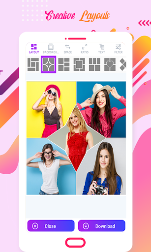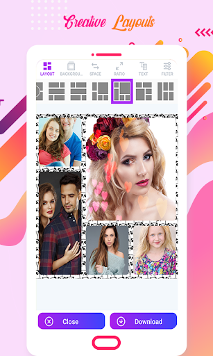 صانع Collage هو من أفضل تطبيق محرر الكولاج.إنه يحتوي على العديد من الميزات مثل إضافة نص على الصور ، وتطبيق التأثيرات الرائعة والمرشحات مع تصميمات مذهلة للتخطيط.لضبط صورك