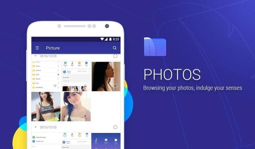 T File Manager application can help you to browse you files by categories automatically, and it support you browse your photos directly.