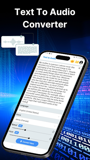 • الأصوات الطبيعية : استمتع بأصوات نابضة بالحياة في كل من خيارات الذكور والإناث.> إدارة الملفات : إدارة ملفات الصوت الخاصة بك المصدرة. TTS Converter : محول متعدد الاستخدامات للرسائل النصية يلبي جميع احتياجاتك.