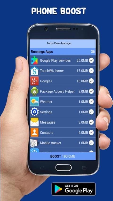 مدير توربو نظيف هو التطبيق الصحيح للهاتف المحمول الروبوت الخاص بك. لديك جهاز التنظيف الأكثر فعالية والأكثر أمانا وقدرة كبيرة على مكبر للصوت الذاكرة، وتسريع الهاتف والبطارية الروبوت التوقف. مع أصغر حزمة التثبيت، والمراجعات ويمكن لهذه التطبيقات تعزيز الهاتف الخاص بك إلى أفضل أداء. مع هذا التطبيق يمكنك تحرير التخزين، وزيادة ذاكرة الوصول العشوائي، تبريد الهاتف، تمديد زمن الانتظار، والهاتف مثل تشغيل جديد.