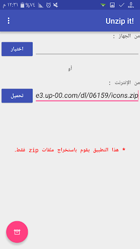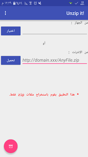 * ملاحظة : هذا التطبيق يقوم باستخراج الملفات بصيغة zip فقط . أيضًا ، هذا التطبيق لا يستطيع استخراج الملفات المحمية .