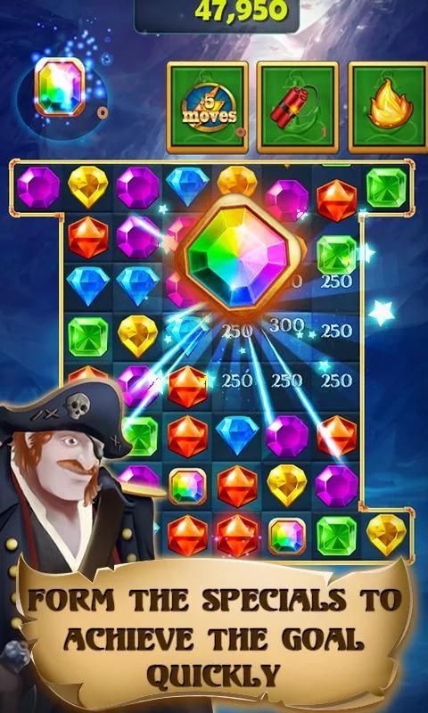 اللعبة تتكون من اللعب مختلفة في كل مستوى. في كل مستوى لديك هدف الكنز. متابعته حتى النهاية، وسوف تجد كنز القراصنة. اضغط على المباراة 3 أو أكثر من الأحجار الكريمة مماثلة في صف واحد. في كل مستوى لديك قائمة محددة من الأهداف التي تحتاج إلى أن تكتمل. الاستفادة منها لجعلها سحق والانفجار. قوة سحق السحرية هي في يديك! المشي من خلال مئات من المستويات في هذا القراصنة الكنز جواهر المغامرة. هذا لغز لعبة هو الادمان وغامضة مليئة الآثار المجوهرات الطحن لامعة ملونة مع لعبة الرسم مصممة بشكل جيد.