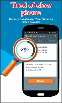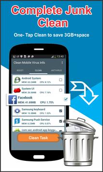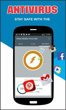 تنظيف موبايل الفيروسات معلومات يساعدك على تنظيف جميع الهواتف النقالة من الملفات غير المرغوب فيه (الصور غير المرغوب فيه، وأشرطة الفيديو غير المرغوب فيه، النظام غير المرغوب فيه، الإعلان غير المرغوب فيه، ذاكرة غير المرغوب فيه مخبأ، والبريد غير المرغوب فيه) على الهواتف النقالة الروبوت الخاص بك، والتي يمكن أن تساعد معززة وتحسين سرعة المحمول الخاص بك والأداء، كما وكذلك منع هاتفك النقال من تشغيل بطيئة ومتخلفة. فإنه يمكن أيضا تحرير ذاكرة الوصول العشوائي المحمول الخاص بك (الذاكرة) و سباك التخزين، يمكنك التمتع باستخدام سريع وسريع المحمول بنقرة واحدة فقط تنظيف موبايل فيروس Info- أفضل نظافة جميع التطبيقات نظيفة.